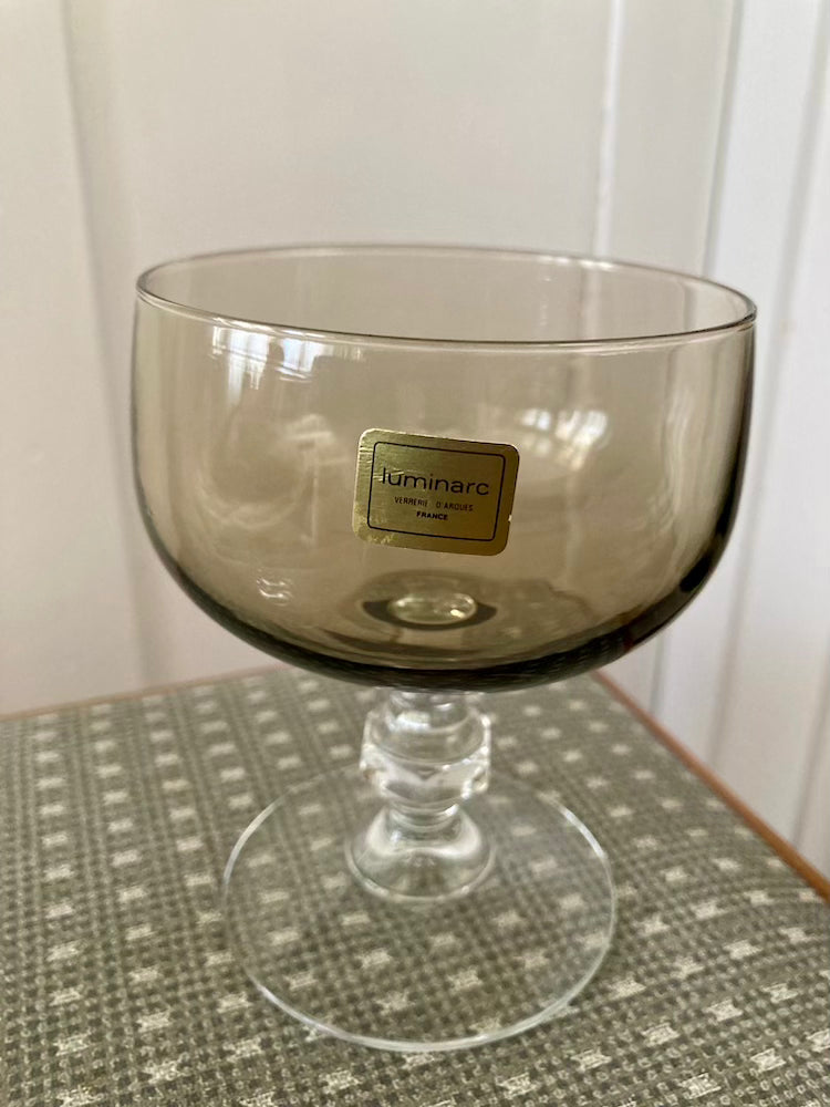 Pair of Vintage French Luminarc Domaine Smoke Wine Glasses