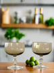 - Pair of Lovely Vintage French Smoked Wine Glasses with Clear Stem